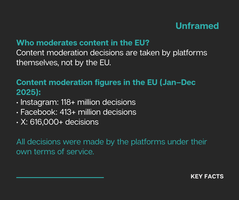 In 2025 alone, platforms operating in the EU took vast numbers of moderation decisions under their own terms and conditions.