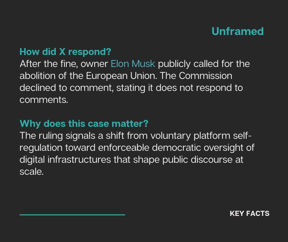 Nevertheless, the reaction to the ruling revealed how sensitive those limits remain. Musk’s call to abolish the EU did not engage with the technical findings of the case. Instead, it reframed regulatory enforcement as ideological repression.