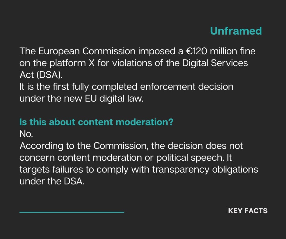 At first glance, the decision appeared administrative: a €120 million fine imposed by the European Commission on the platform X under the Digital Services Act. A ruling grounded in transparency obligations, adopted through due process, and applicable to all platforms operating within the European Union.
